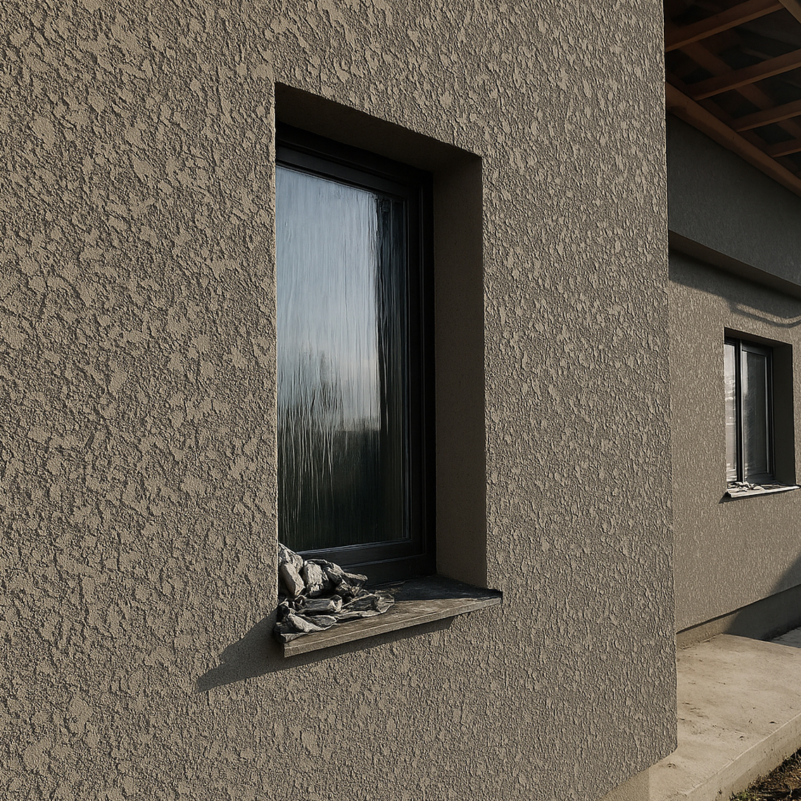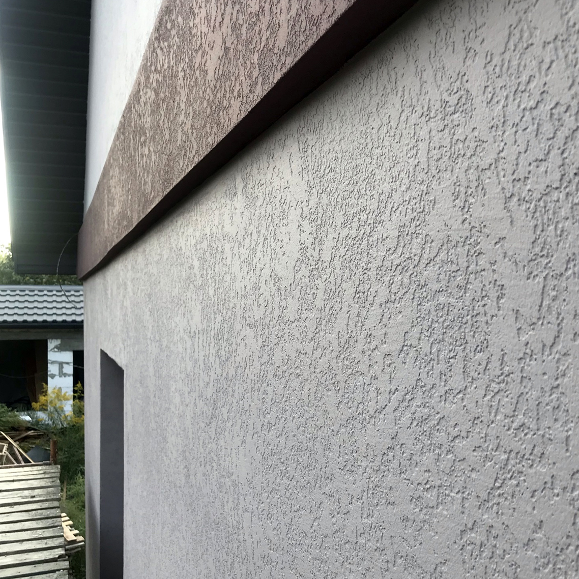 Ми приймаємо фасад будинку у відґрунтованому стані, без западин та виступів, щоб забезпечити рівномірний розподіл декоративної штукатурки “американка” по поверхні стіни. Чим краще вирівняна поверхня, тим рівномірнішою і якіснішою буде виходити фактура рельєфного малюнка.
